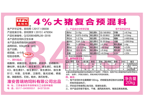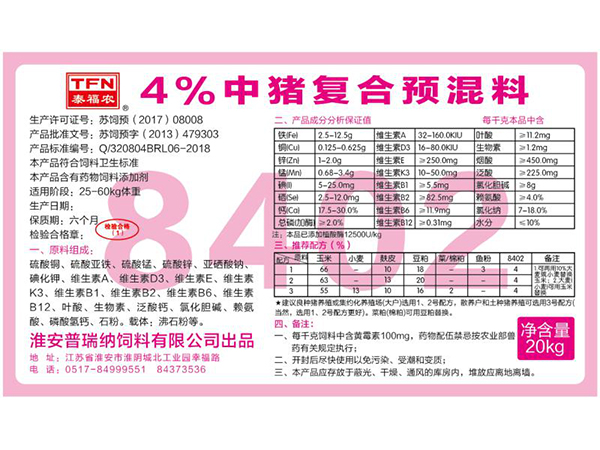 84系列4%豬預(yù)混料